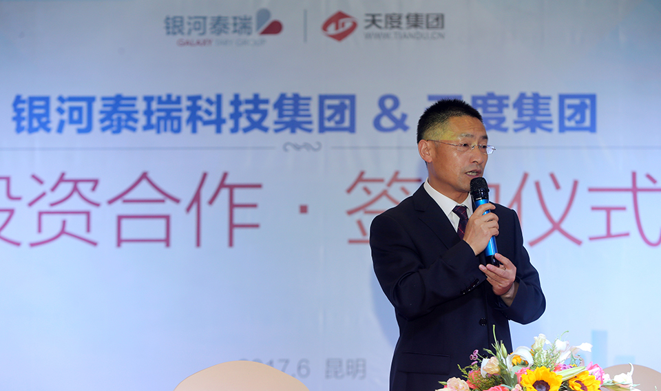 2017年6月1日,銀河泰瑞科技集團與天度集團在銀河科技園就“現代農業+互聯網服務平臺”項目簽訂投資合作協議,雙方將共同成立公司運營該項目,合力打造云南省高原特色農業新的發展模式。現代農業+互聯網服務平臺是在與淘寶中國特色云南館合作背景下,依托于銀河泰瑞科技集團在農業科技、農業金融和農產品流通領域的優勢資源,應用物聯網、云計算、大數據、移動互聯等現代信息技術,推動農業全產業鏈改造升級,幫助傳統農業企業能夠去實現轉型升級,產業結構調整的農業產業互聯網服務平臺。