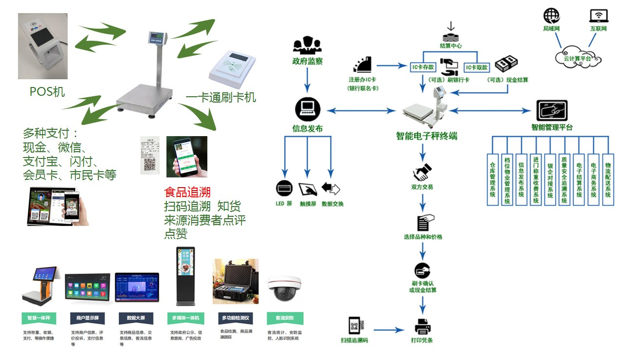 利用物聯網、云計算、大數據、人工智能、區塊鏈等信息技術,為市場配備了智慧電子稱、商戶屏、攝像監控等設備及智慧管理平臺,涵蓋“市場、商戶、物業、經營、場務、數據、設備”各方面管理,實現市場可管控、可感知、可追溯、合同電子化、收費智能化、運營智慧化、數據一體化,極大降低了人工成本。利用AI技術,實現水電、停車、人員、防疫等的智能管理,促進市場有序高效運行,同時大數據實時記錄公開透明,產品價格、農殘檢測、產品溯源、商戶證照信息一目了然,交易可追溯,讓老百姓的"菜籃子”拎得更舒心、放心、開心。
